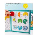 Включва 9 цветни магнитни кръга и правоъгълника, които улесняват визуализирането и разбирането на дробите.